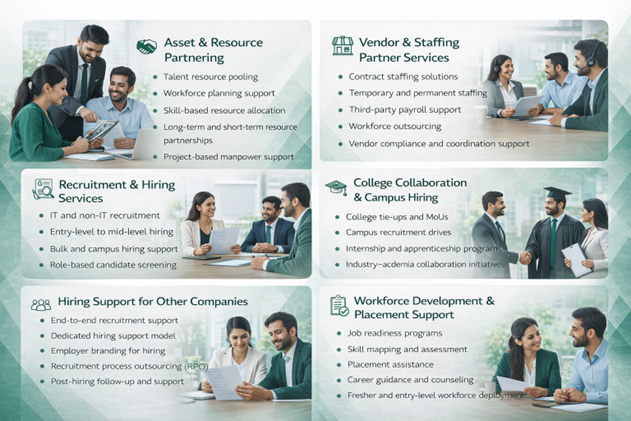 Our services are designed to simplify recruitment, reduce hiring timelines, and ensure quality talent acquisition across IT and non-IT roles.
